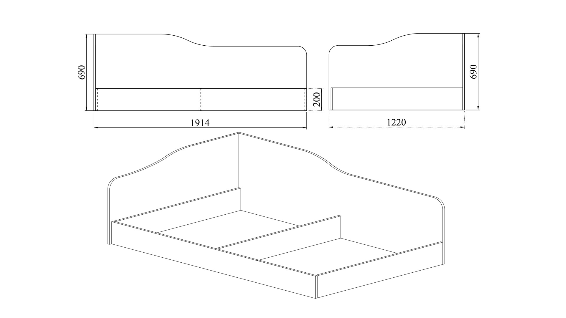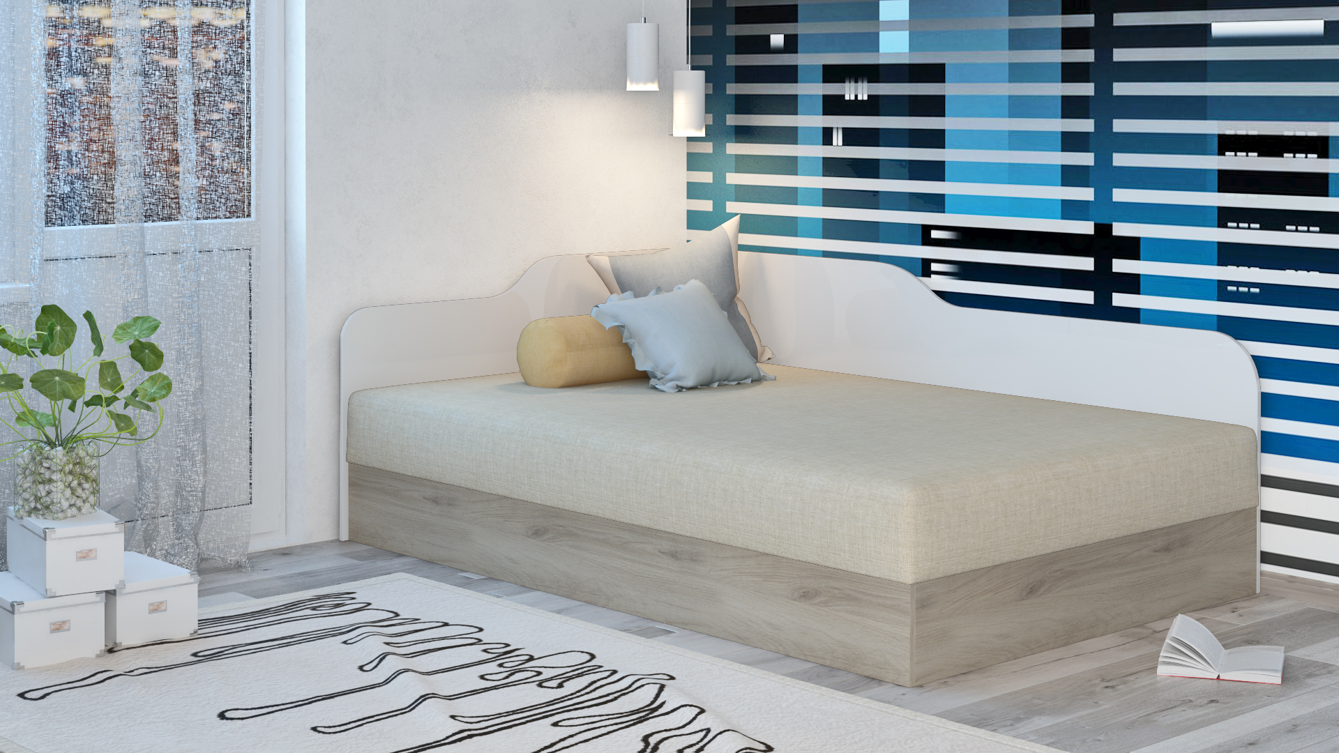 Конструкцията е изработена от 16 мм ЛПДЧ, благодарение на което леглото е здраво, лесно се поддържа и ще ти служи дълго време. Добавените табли осигуряват пълна изолация от заобикалящите го стени, така че когато си легнеш ще усещаш единствено комфорта на матрака и мекотата на завивките. Таблата на леглото можеш да монтираш както от ляво, така и от дясно.