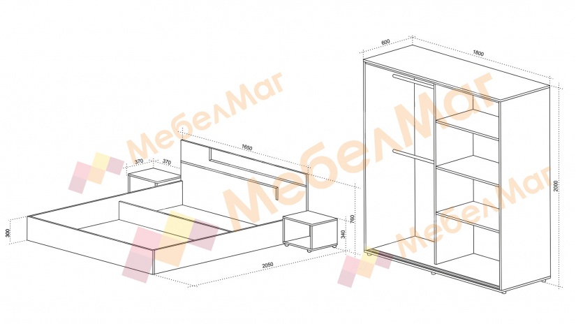 ✓ 18 мм ПДЧ ✓ спалня с механизъм ✓ 2 нощни шкафчета ✓ гардероб с плъзгащи врати ✓ красива и стилна цветова комбинация ✓ модерен декор ✓ качествена изработка