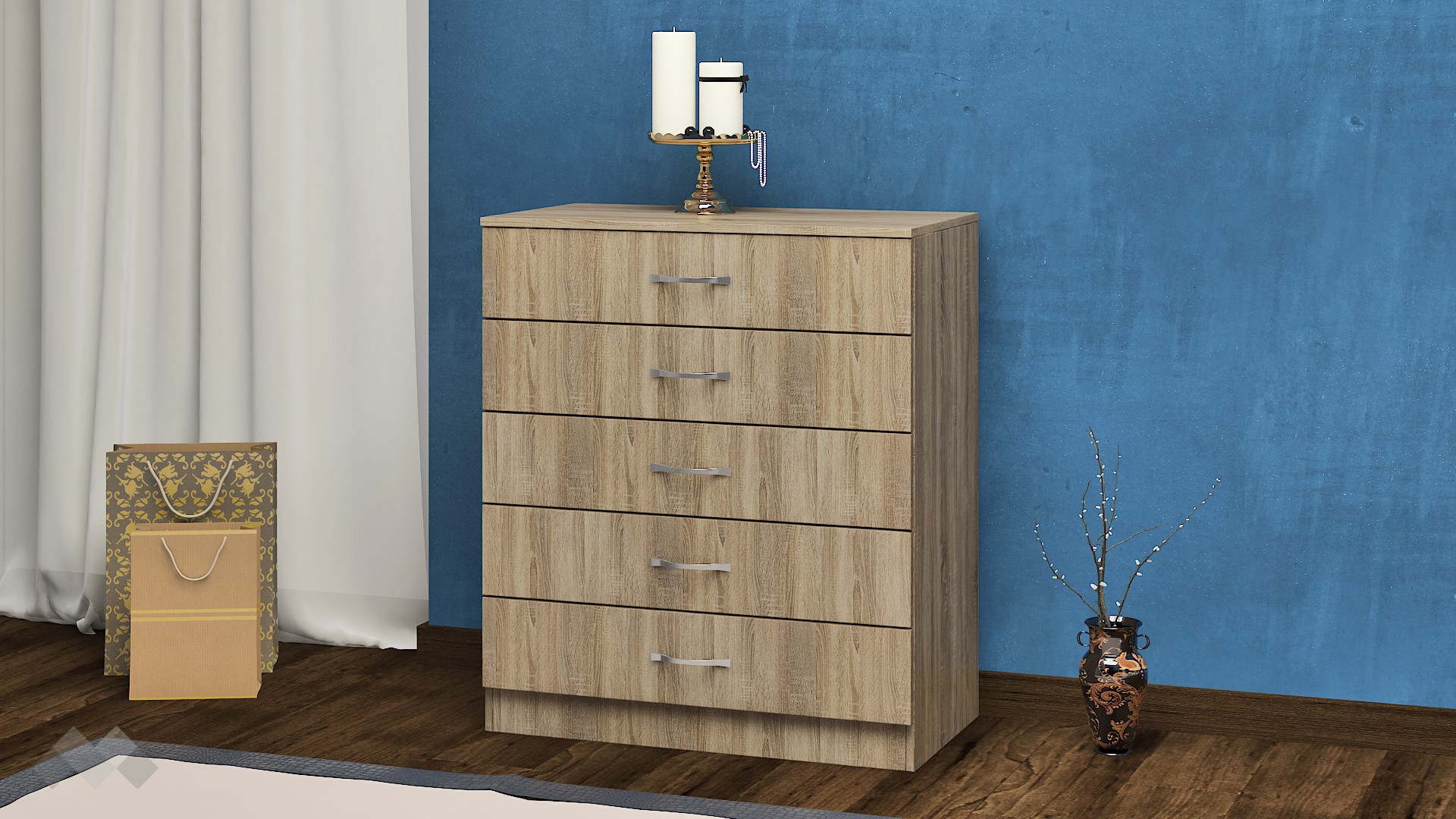 ⭐ Предимства: ✓ 5 чекмеджета ✓ компактен и практичен ✓ модерен декор ✓ качествена изработка ✓ 16 мм ПДЧ
