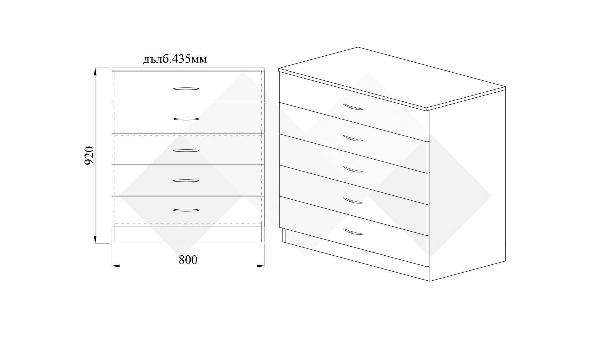 ⭐ Предимства: ✓ 5 чекмеджета ✓ компактен и практичен ✓ модерен декор ✓ качествена изработка ✓ 16 мм ПДЧ