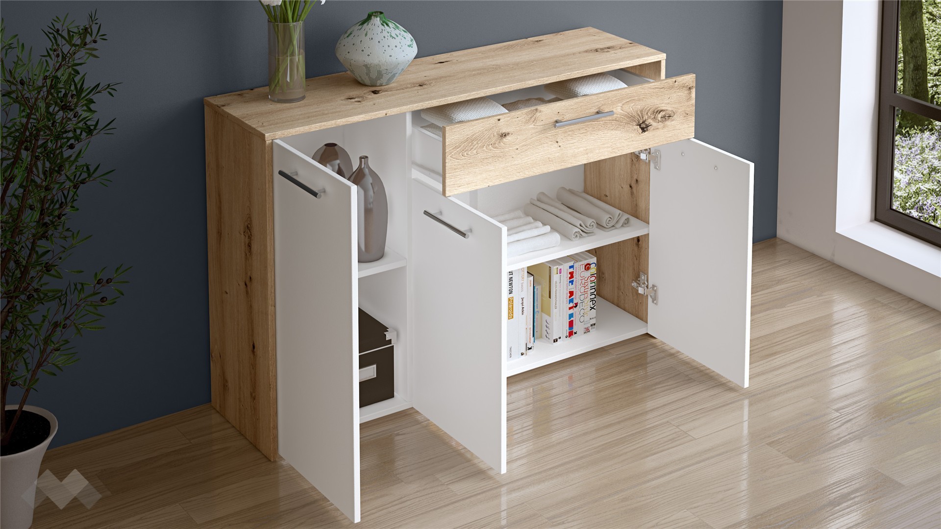 ⭐ Предимства: ✓ чекмедже ✓ 2 шкафа ✓ компактен и практичен ✓ модерен декор ✓ качествена изработка ✓ 16 мм ПДЧ