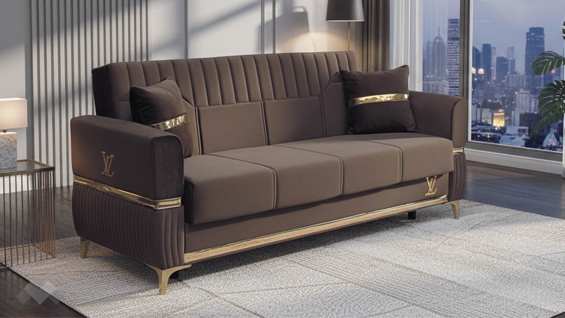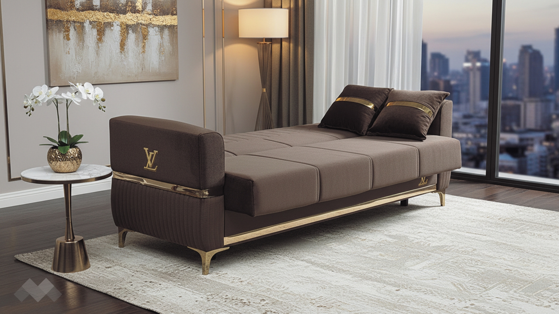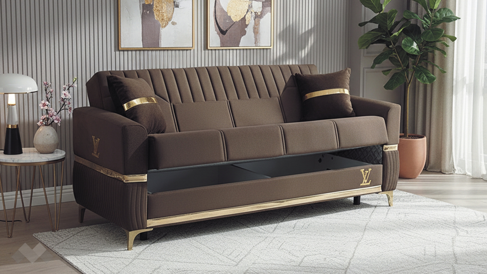 Елегантният диван Верино впечатлява с луксозен дизайн и изключително внимание към детайла. Моделът комбинира топли цветове с изящни златиснти акценти, които му придават премиум излъчване и създават усещане за класa и елегантност.