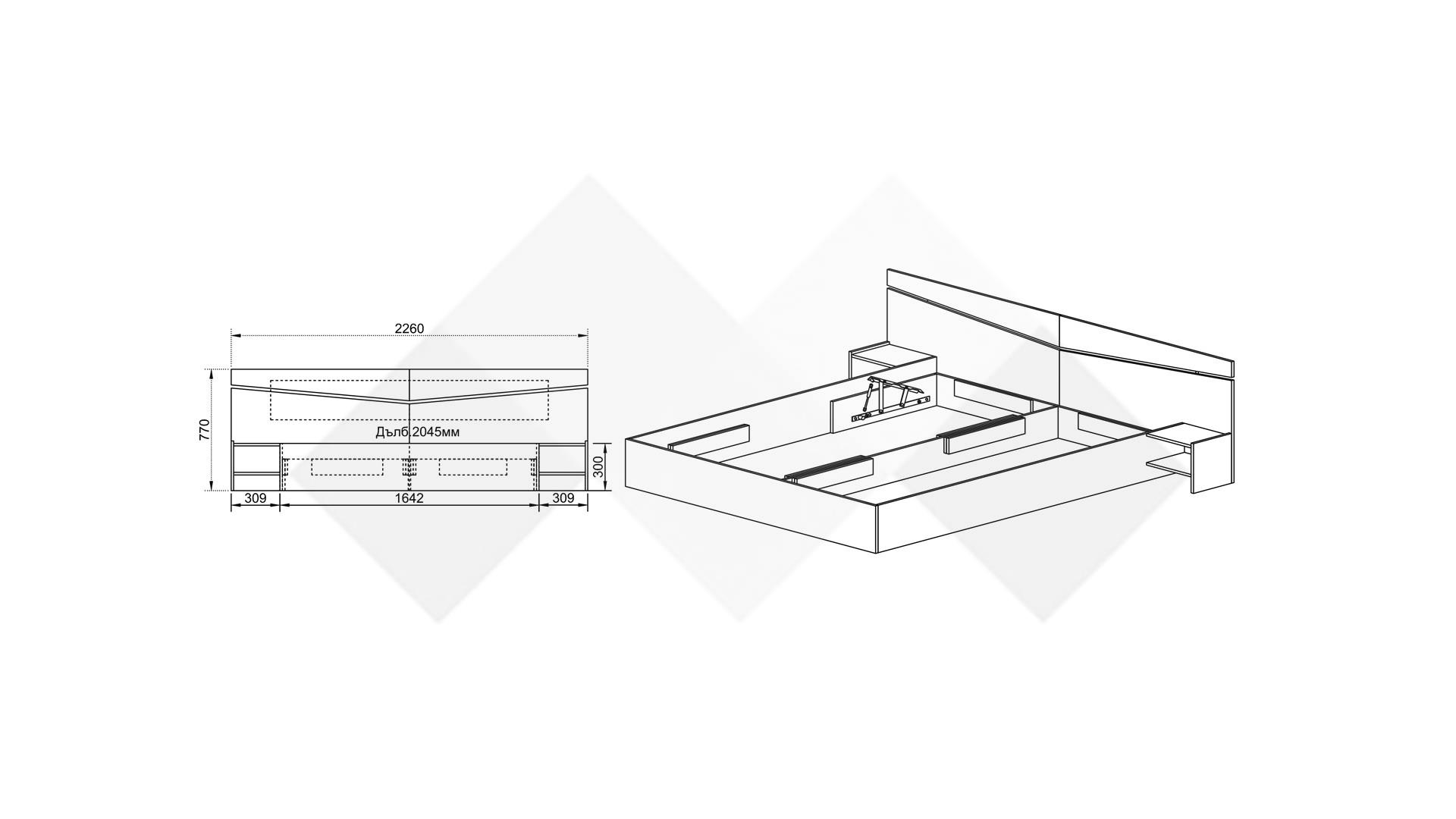 ✓ 2 нощни шкафчета ✓ семпъл дизайн ✓ повдигащ механизъм ✓ качествена изработка ✓ 16 мм ПДЧ