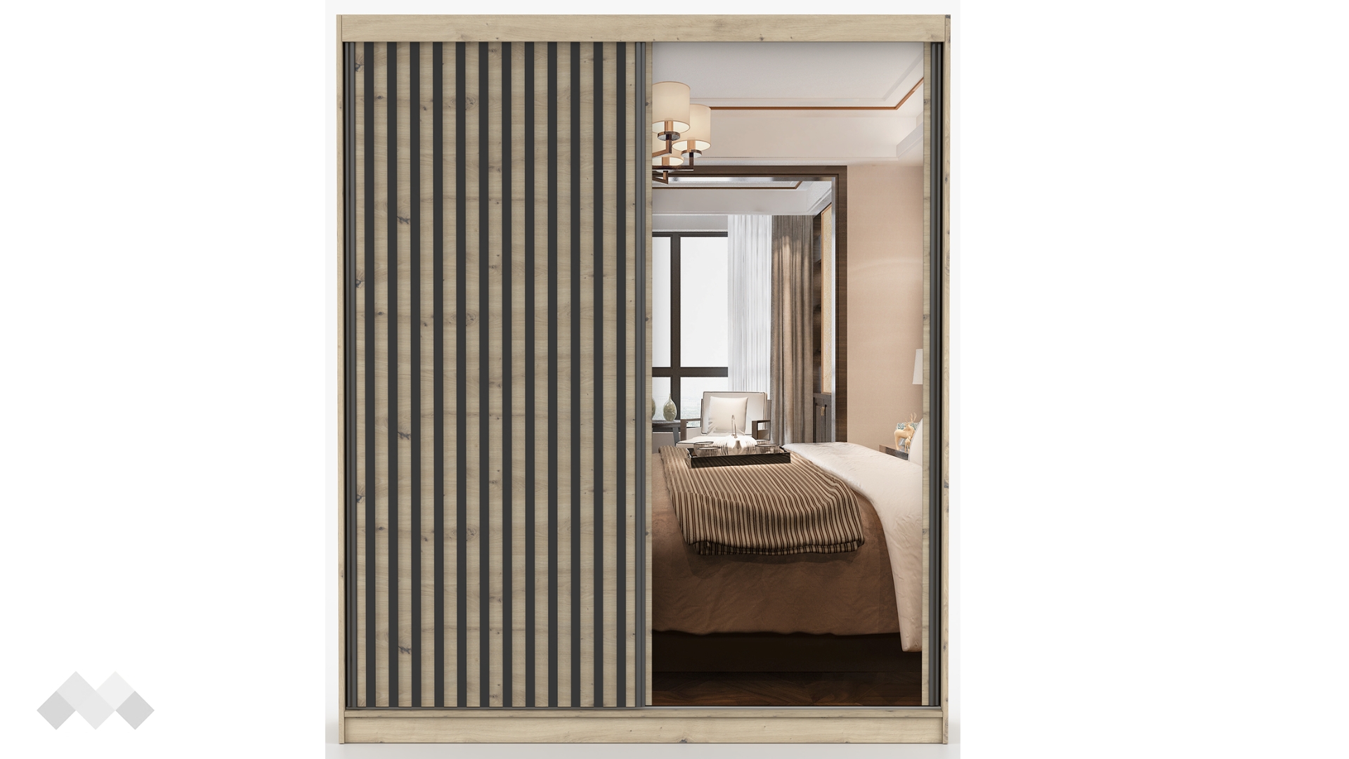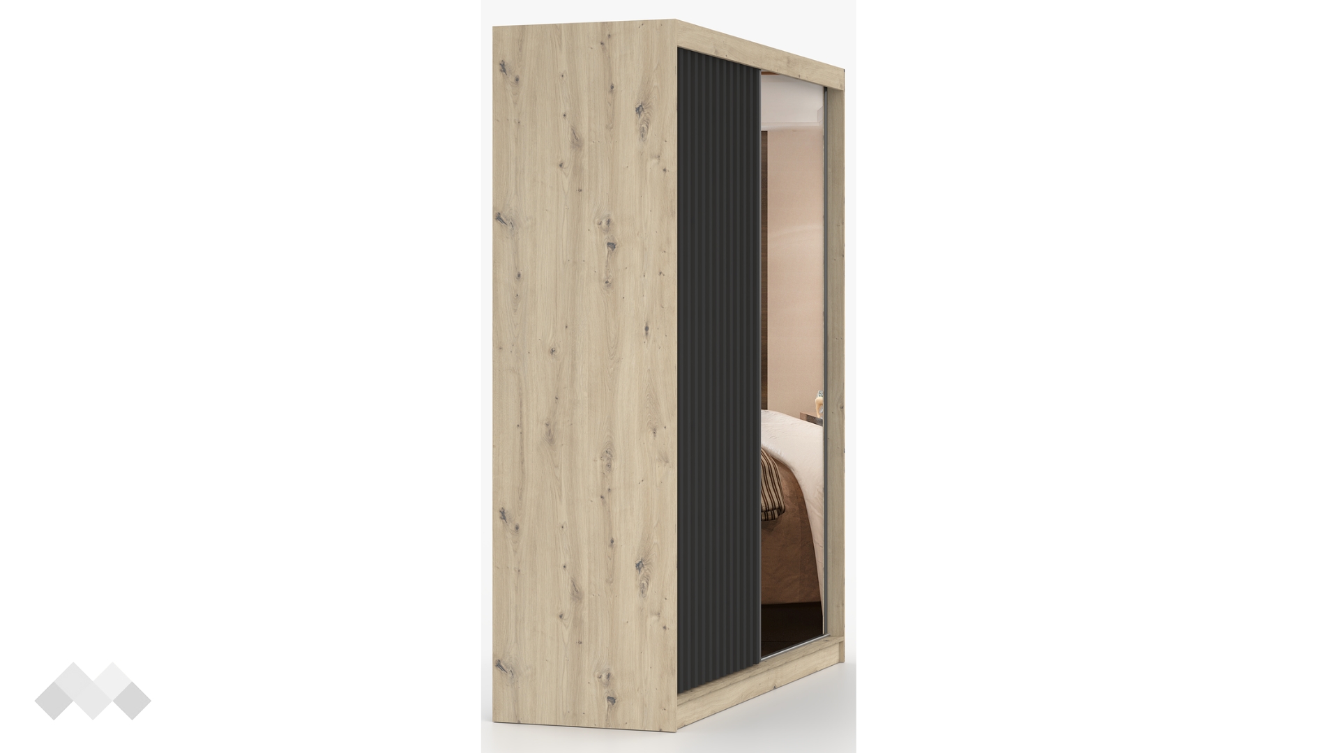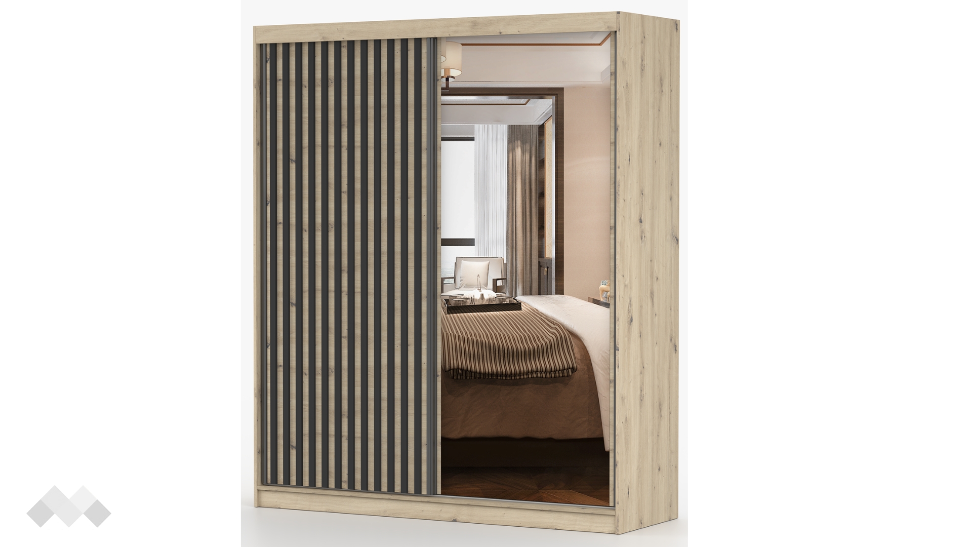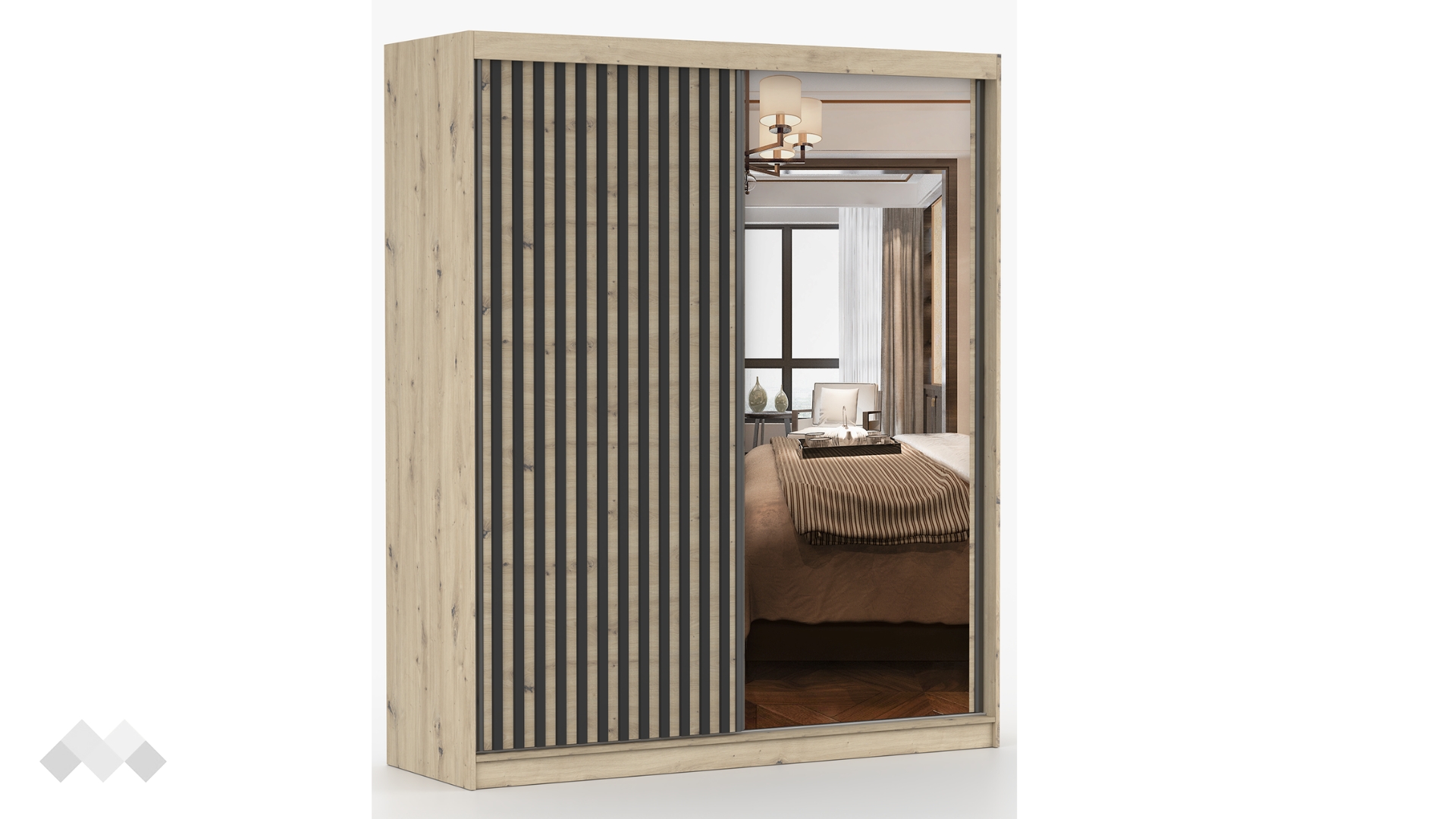 Още едно изкусително предложение от нас - Гардероб Верона с плъзгачщи врати. Стил, практичност и уют, благодарение на модерната му визия. Контрастът между светлия дъб артисан и тъмния норвежки бор, комбинирани с вертикалната форма на ламели е изключително впечатляваща комбинация.
