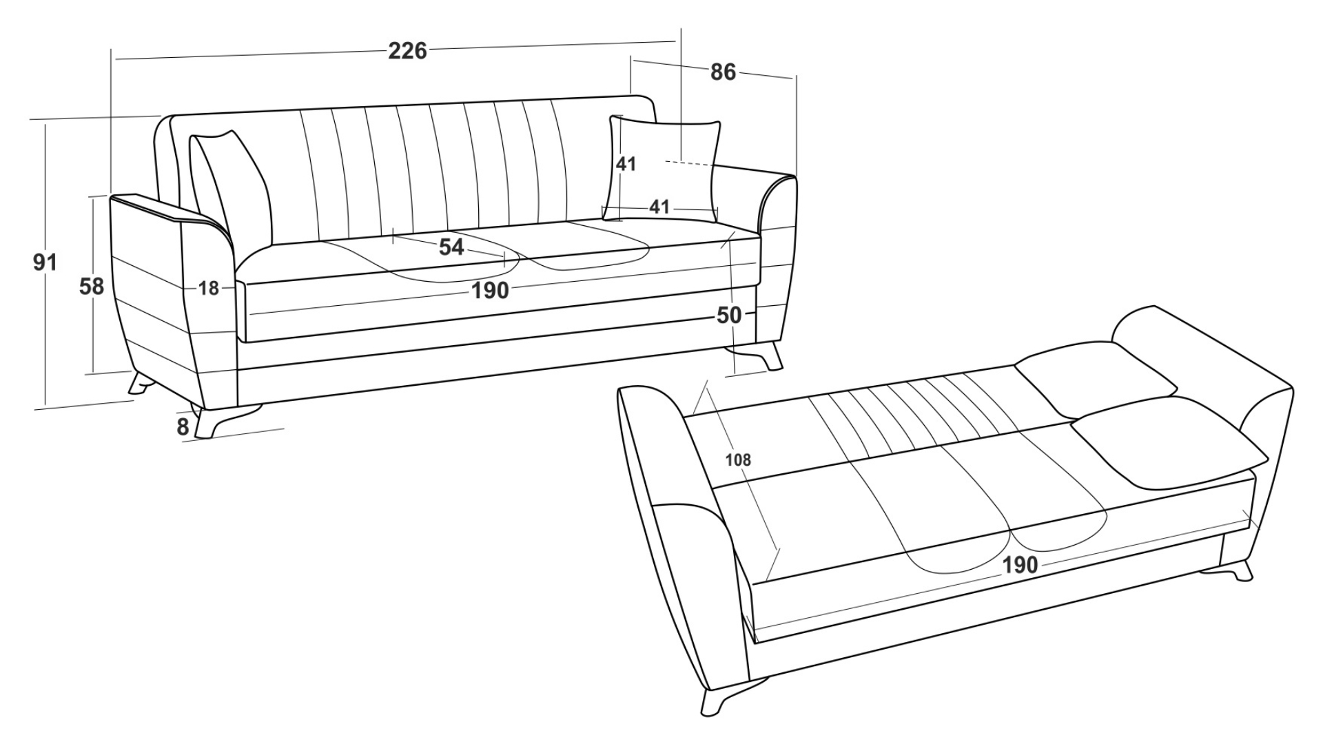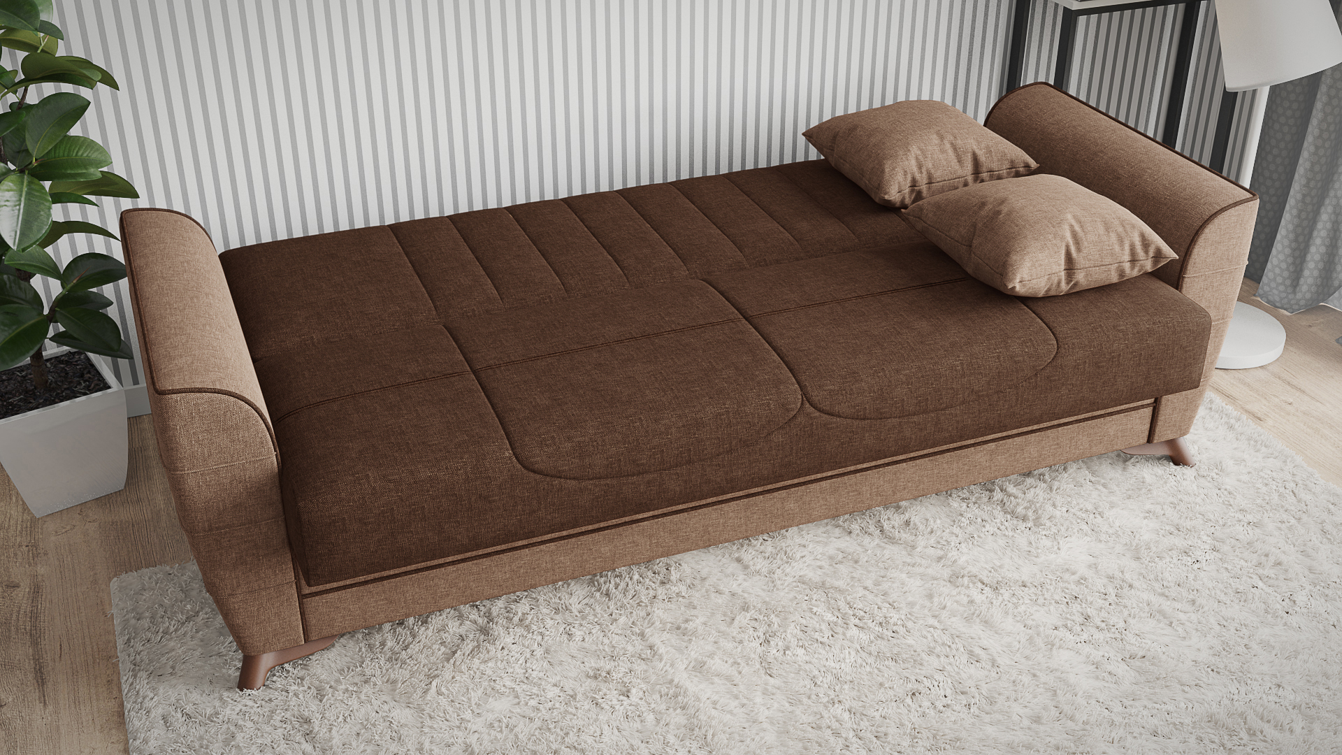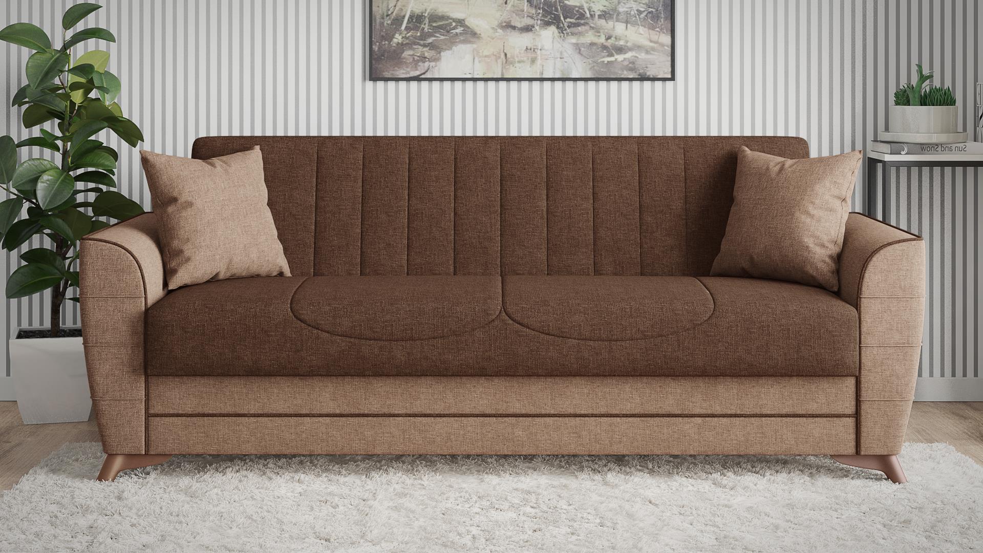 Диванът има здрава конструкция от масивна дървесина и ПДЧ, отличаващи се с устойчивост за дълъг период на употреба. Моделът се предлага в цветови комбинации, подходящи както за класически, така и за по-модерен интериор.