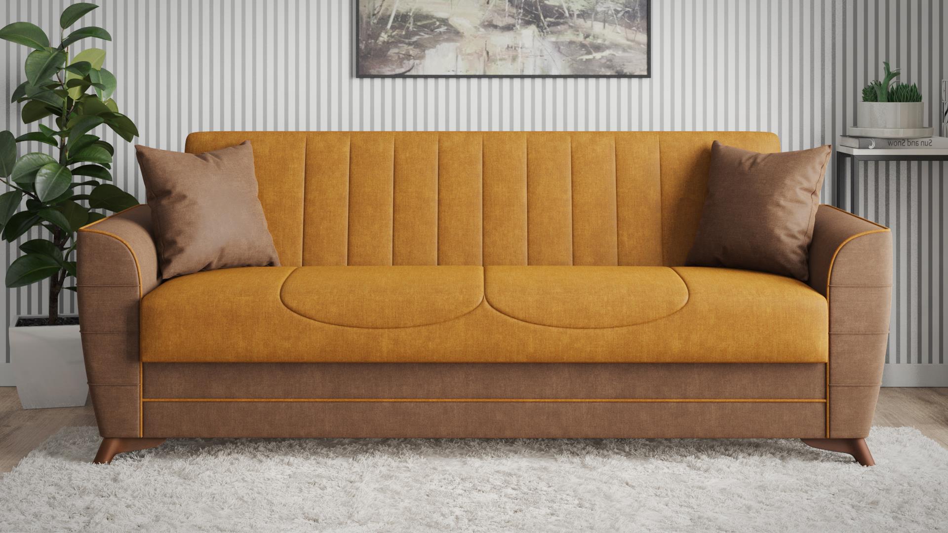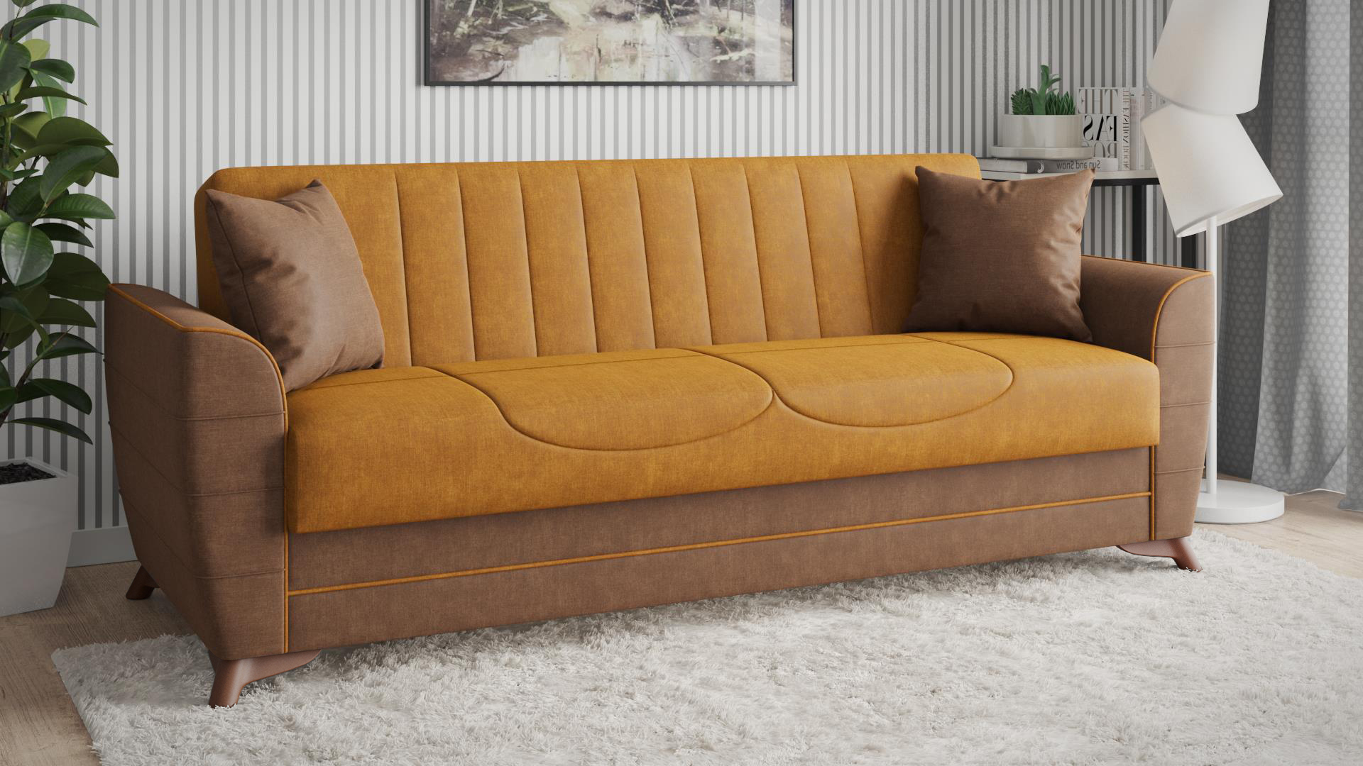 Диванът има здрава конструкция от масивна дървесина и ПДЧ, отличаващи се с устойчивост за дълъг период на употреба. Моделът се предлага в цветови комбинации, подходящи както за класически, така и за по-модерен интериор.