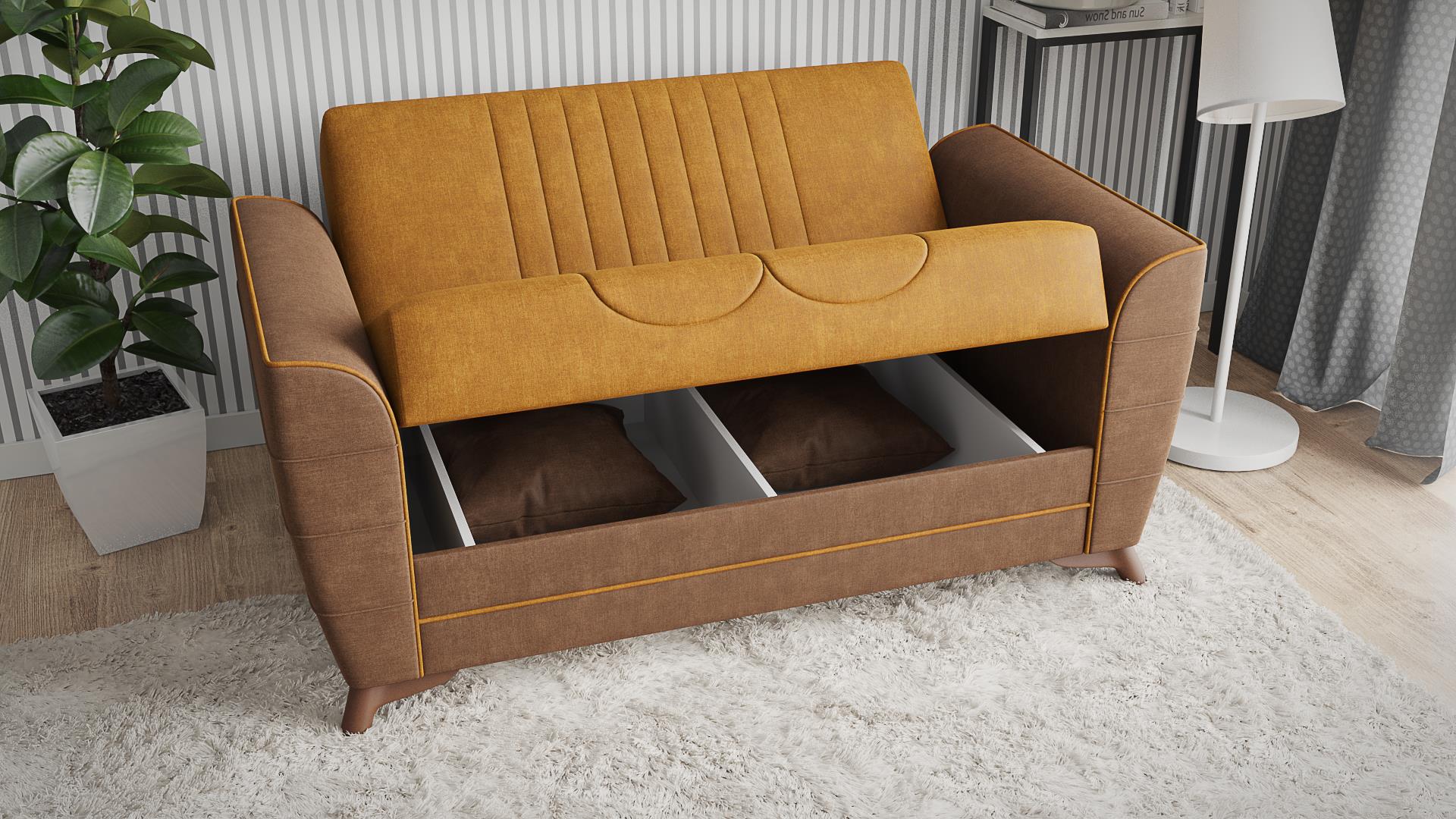 Диванът има здрава конструкция от масивна дървесина и ПДЧ, отличаващи се с устойчивост за дълъг период на употреба. Моделът се предлага в цветови комбинации, подходящи както за класически, така и за по-модерен интериор.