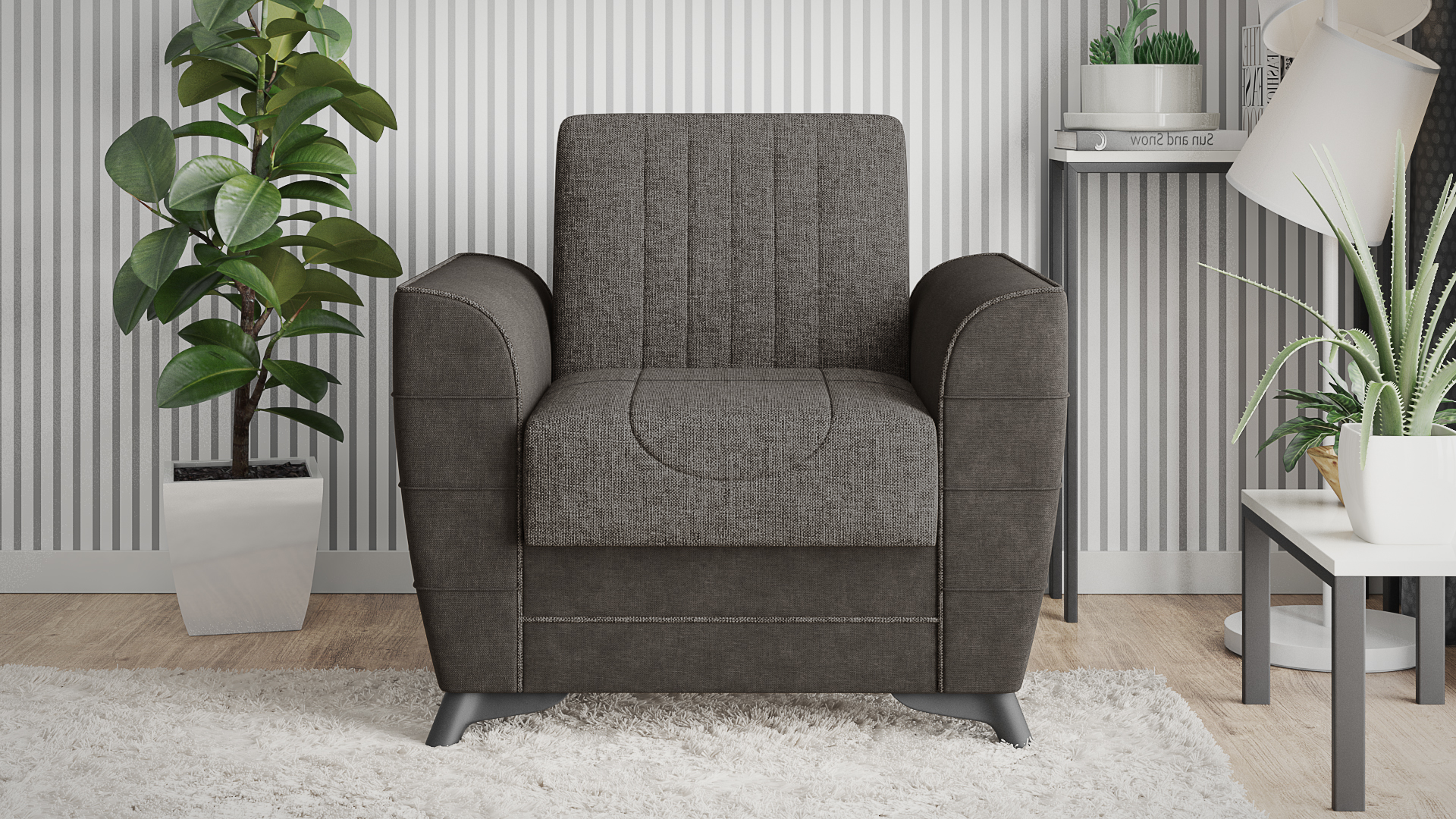 Фотьойл Ялта впечатлява с елегантност, изчистени линии и стилна визия. Извити подлакътници, обкантени с декоративен кант, в комбинация с фигурални шевове по дамаската и умело подбрани цветови нюанси го превръщат в истинско интериорно бижу.