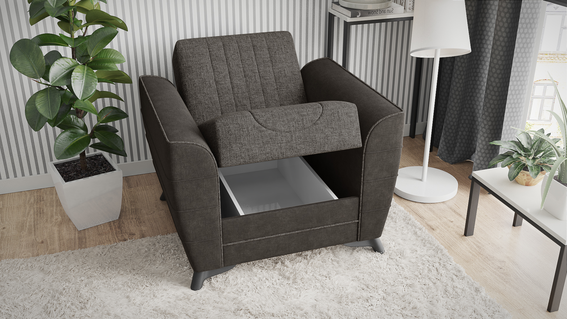 Фотьойл Ялта е и функционален - благодарение на клик-клак механизма ще разполагаш с повече пространство за релакс, а под седалката се крие практична ракла, където да съхраняваш вещите, за които все не се намира място. Дамаската е приятна на допир от здрав, устойчив на износване и замърсявания текстил.