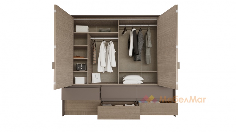 Гардеробът е неотменима част от всяка спалня, предоставяйки не само място за съхранение, но и допълнителен комфорт и удобство. Един добре проектиран гардероб може значително да подобри функционалността на стаята, затова ти представяме четирикрилен гардероб Захир.