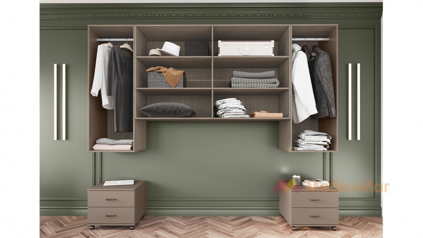 Гардеробът е проектиран така, че да се използва пространството над леглото, предоставяйки максимално удобство и лесен достъп до съхраняваните вещи. С него ще разполагаш с две просторни отделения с лостове, в които можеш да закачиш тоалетите си на закачалки. Сгънатите дрехи, кутии за съхранение или други аксесоари ще намерят място в двете отделения с рафтове.