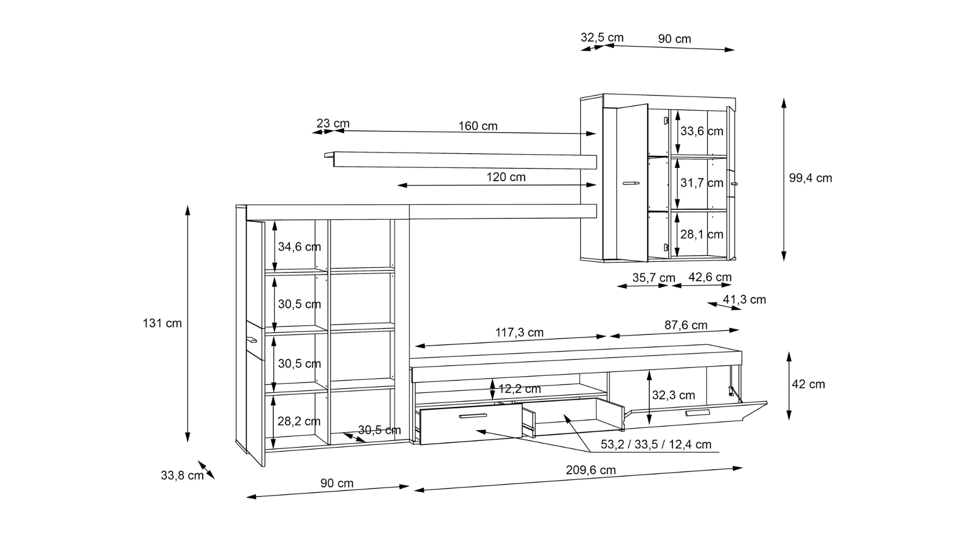В: 202,3 см Ш: 33,8 см Д: 299,6 см